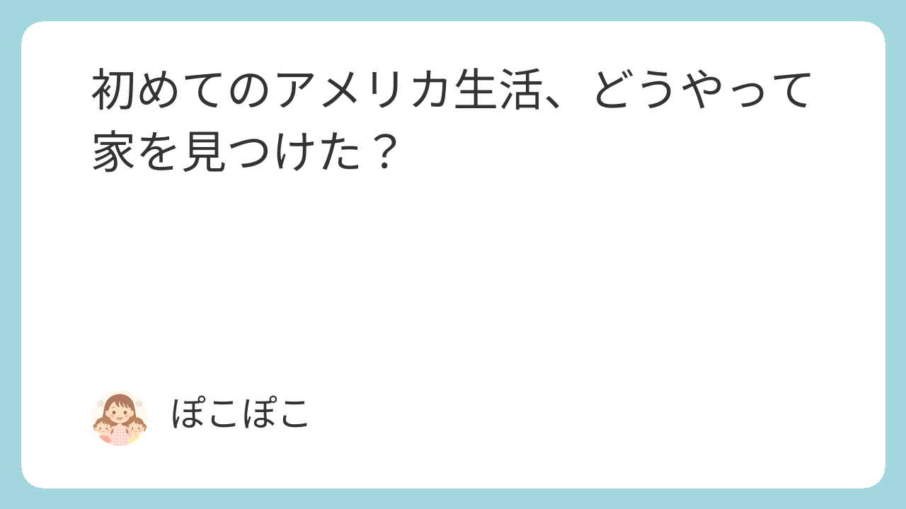 アメリカへ引っ越すことが決まったとき、最初に直面したのが**「どこに、どんな家を借りればいいの?」**という問題。